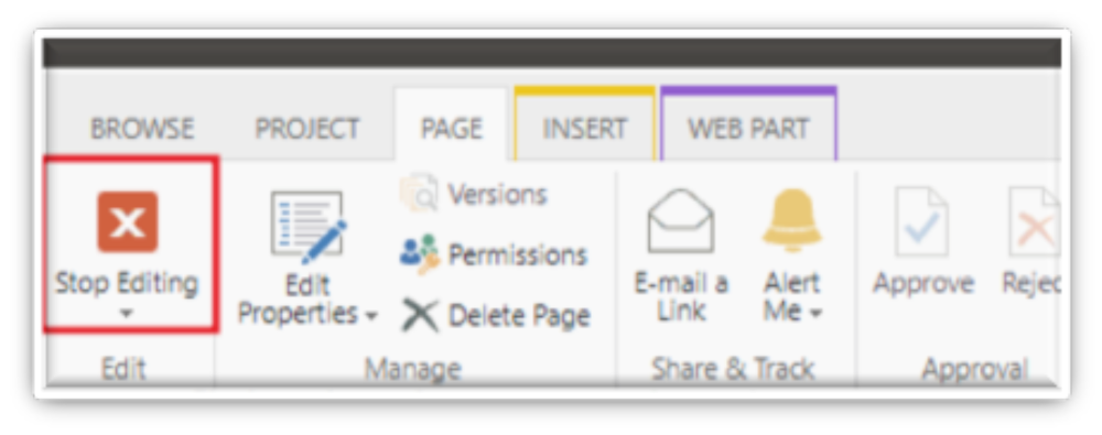 - Before you leave the page, you must click OK at the bottom of the panel and then click Stop Editing in the upper left of the Web Part ribbon at the top.